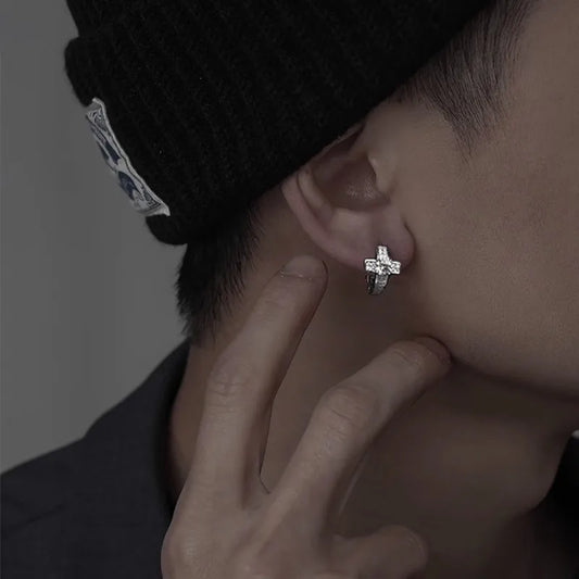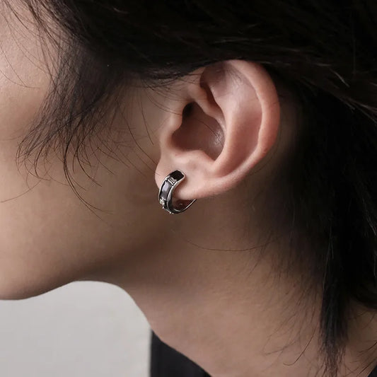 Aretes Para Hombre Sin Necesidad De Perforación Plated Negro Y Plateado Diseño Moda Popular Aretes Clip-On Para Hombre