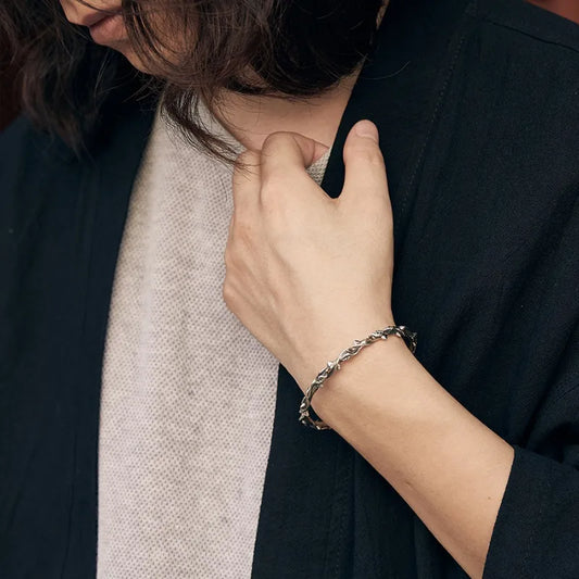 Pulsera De Mano Abierta Con Espinas De Rosas 925 Plata Esterlina Unisex Accesorio De Moda Estilo Dulce Y Cool Joyería Cobre Hecha a Mano